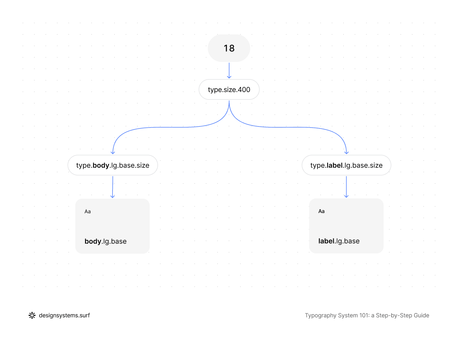 Crucially, Semantic Tokens do not have to be entirely unique for every role. Multiple roles can reference the same Primitive Tokens if their typographic intent aligns. For instance, body and label might share the same font size but differ in line height or letter spacing. Semantic Tokens capture these distinctions directly without duplicating values or breaking the Scale structure.