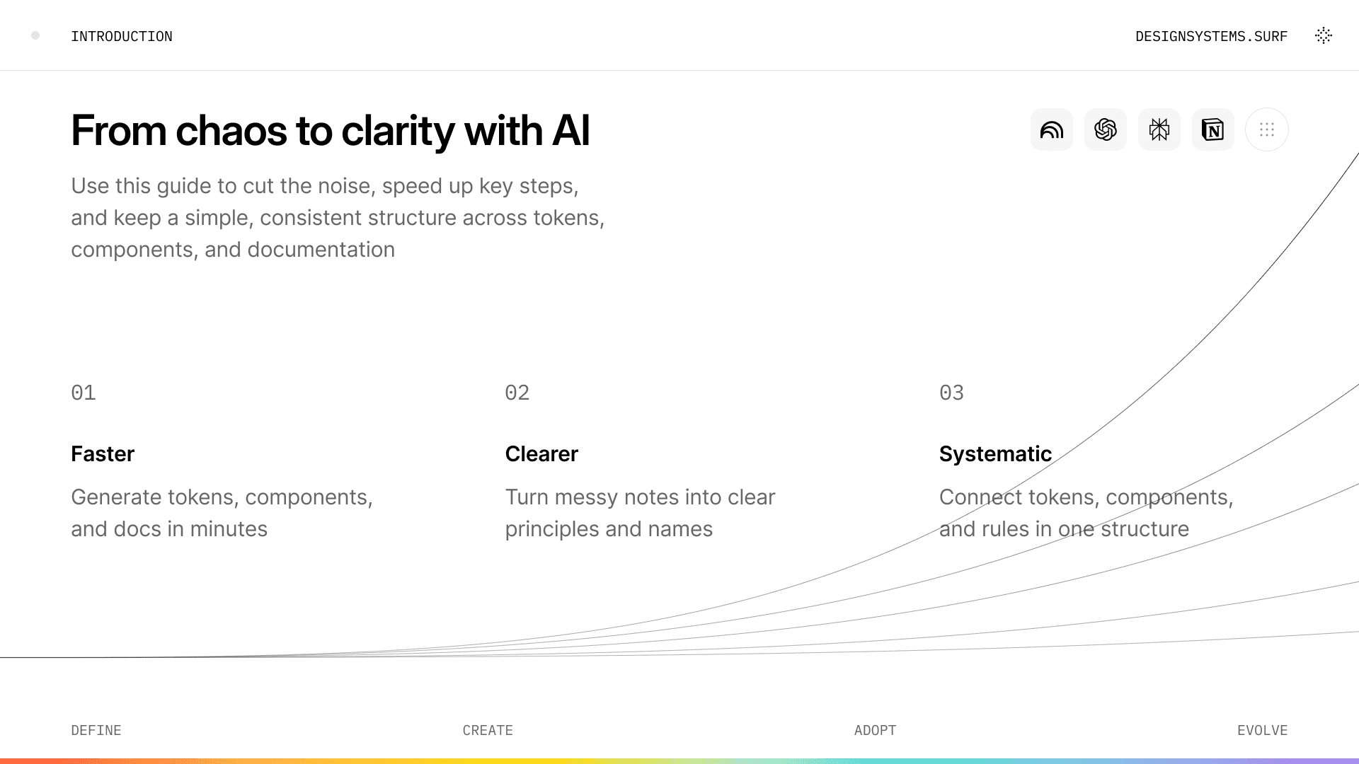 Complete toolkit that makes AI a practical partner for building and scaling your Design System