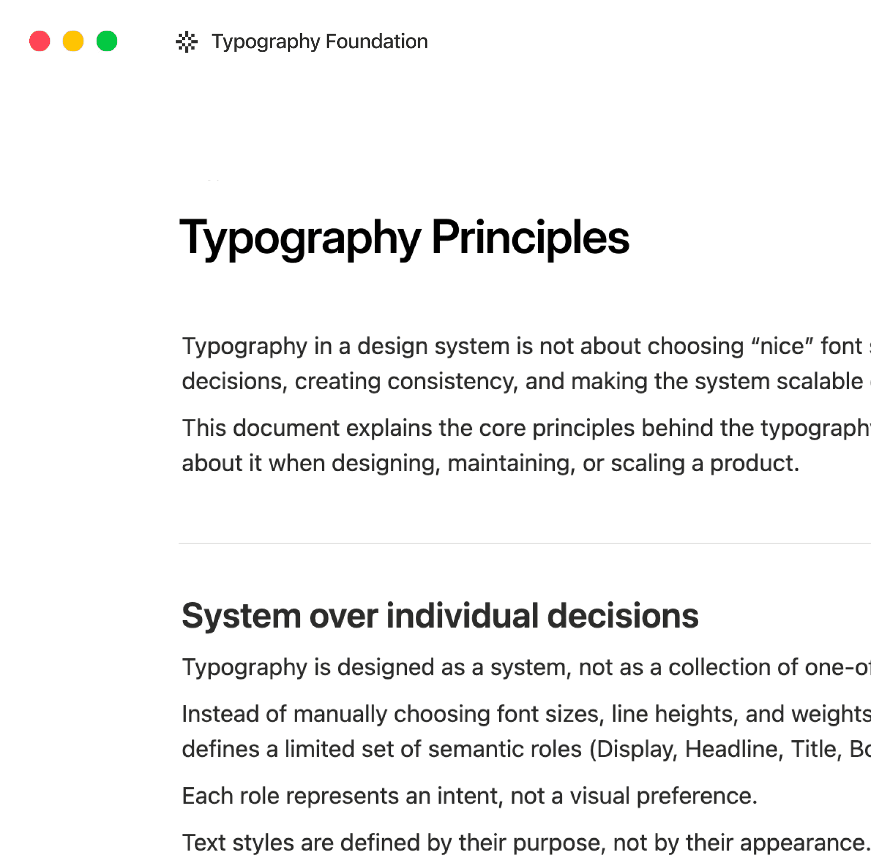 Document typography principles roles, and rules in Notion so teams know what to use and why